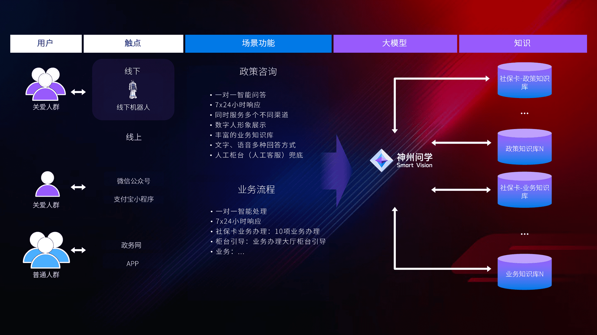 在服务大厅部署客服机器人,,在线上应用和小程序配置客服数字人,,724小时为群众解答常规问题,,客服机器人无法处理的,,,转现场人工处理。。。